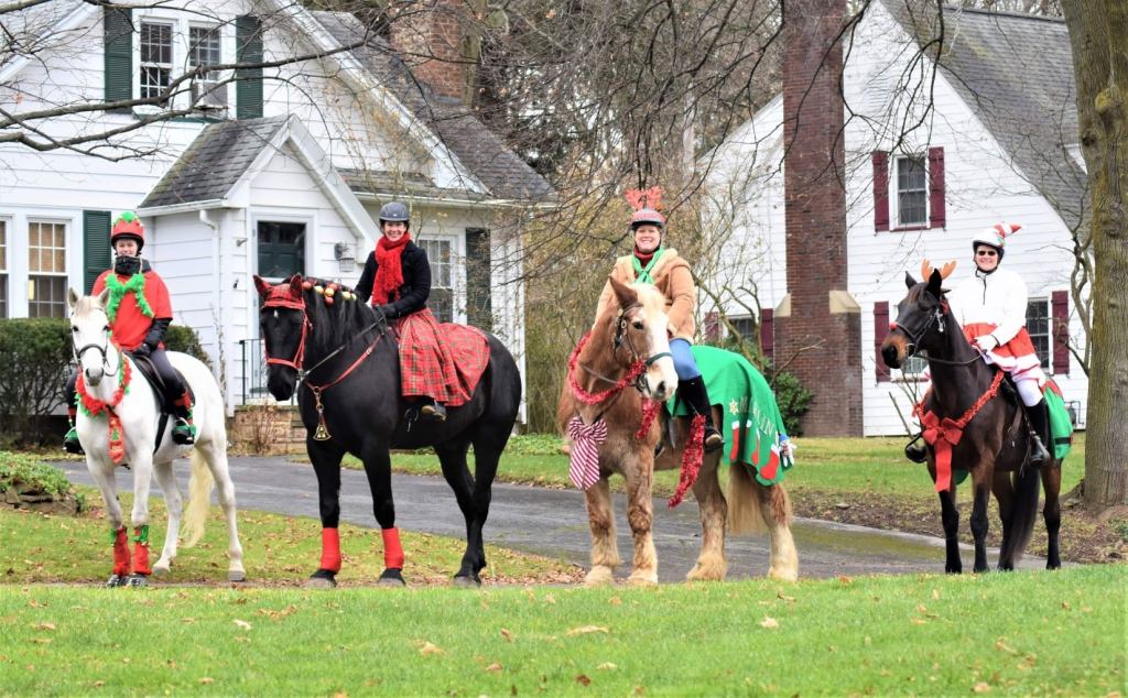 Mickey Rogers, rescued Belgian Draft and their friends in Christmas fancy dress