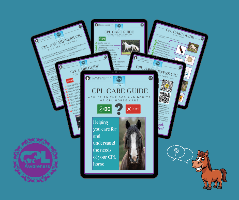 CPL type symptoms have been noted in donkeys (poitou, mammoth), alpaca, sheep and cattle. All animals affected by what we know as feather mites – chorioptes bovis.