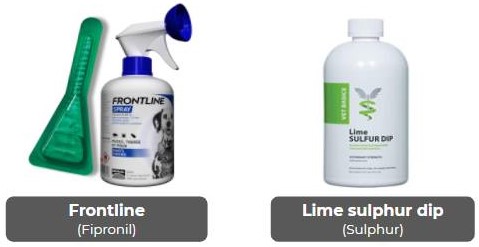 – Because the mites move so fast, it is important to treat the WHOLE body when using an over-the-counter topical agent (such as Lime Sulphur Dip) as they can migrate to other body parts quickly.